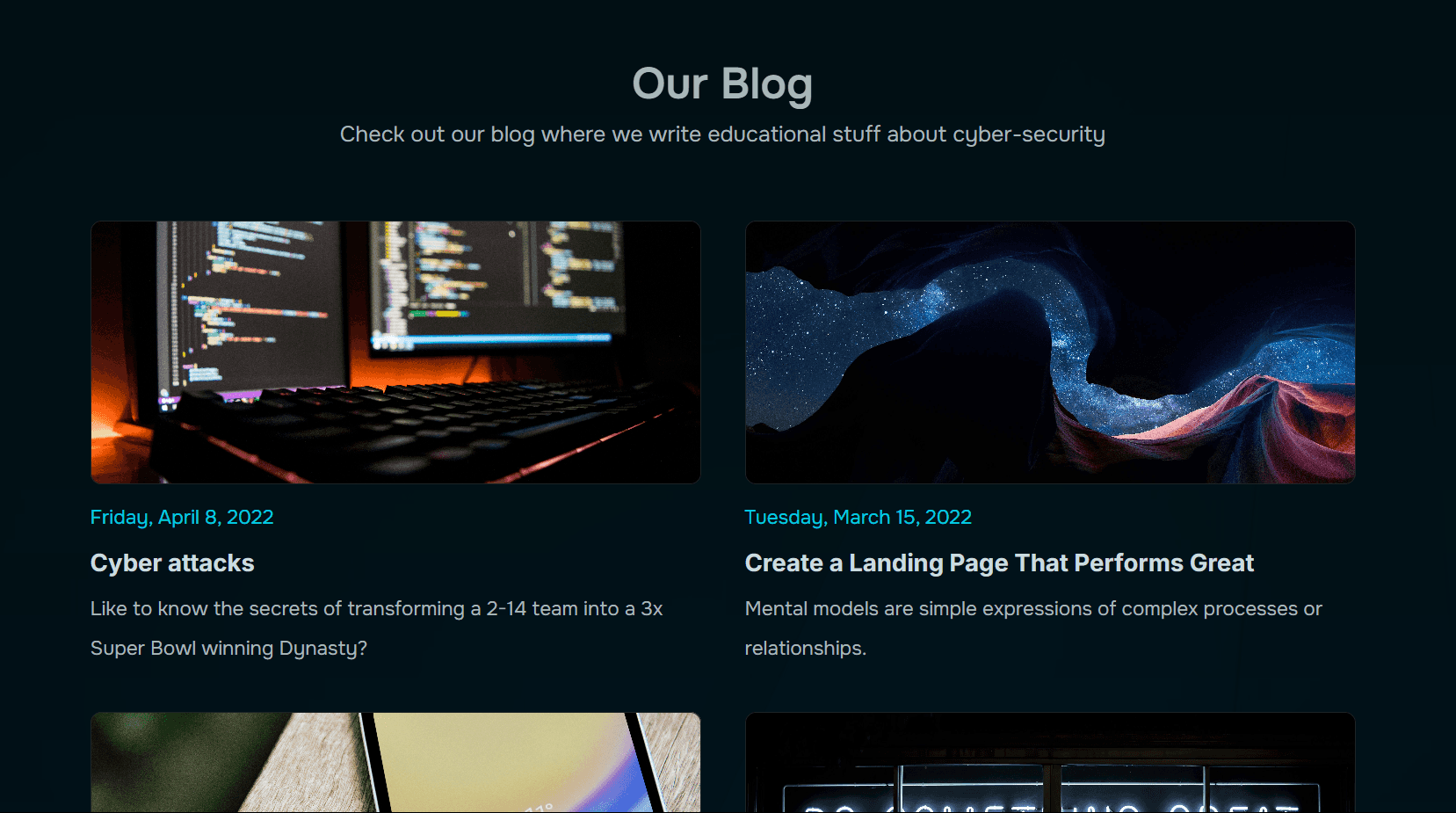 Blog: Dedicated sections provide clear, accessible information on cybersecurity topics, with layouts designed to make complex information digestible.